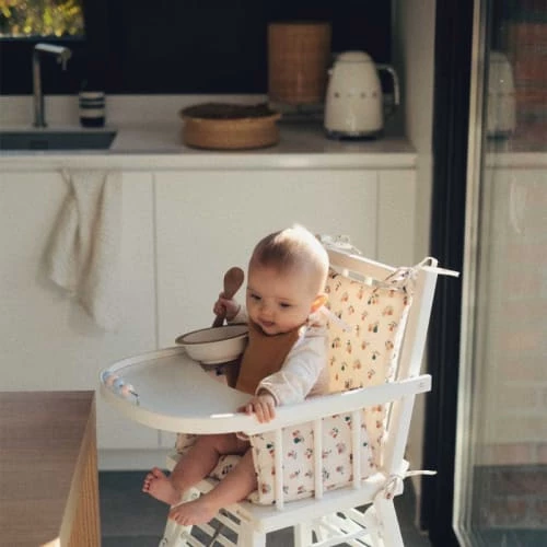 Le coussin de chaise haute est parfait pour que bébé mange confortablement installé.